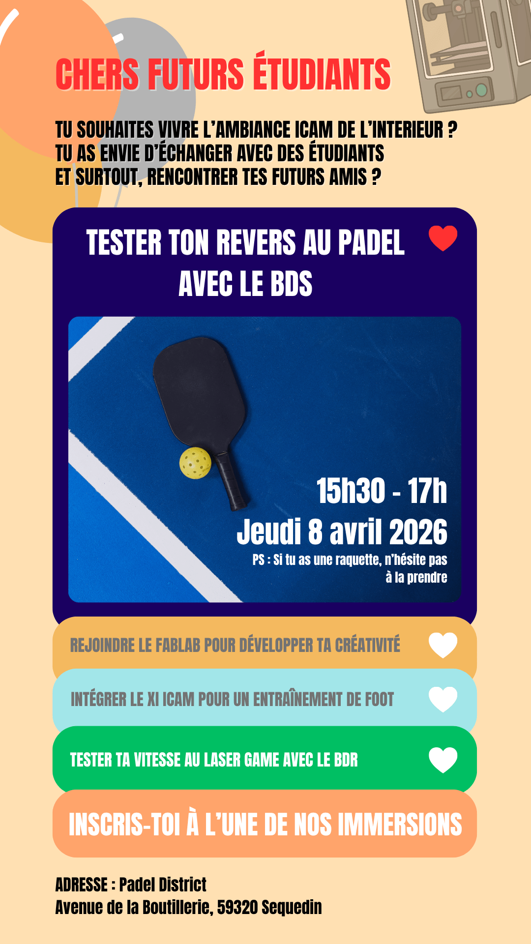 À l’Icam, notre bureau des sports propose une multitudes d’activités. Cette fois, nous te proposons de participer à une session de Padel avec nos étudiants.