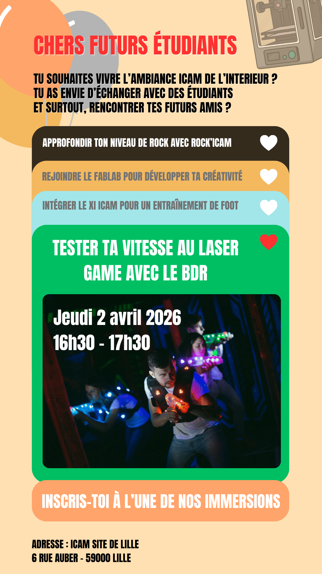 Le bureau des résidents vous invite à son prochain temps convivial : une partie de laser game avec nos étudiants. Viens échanger et t’éclater dans nos locaux !
