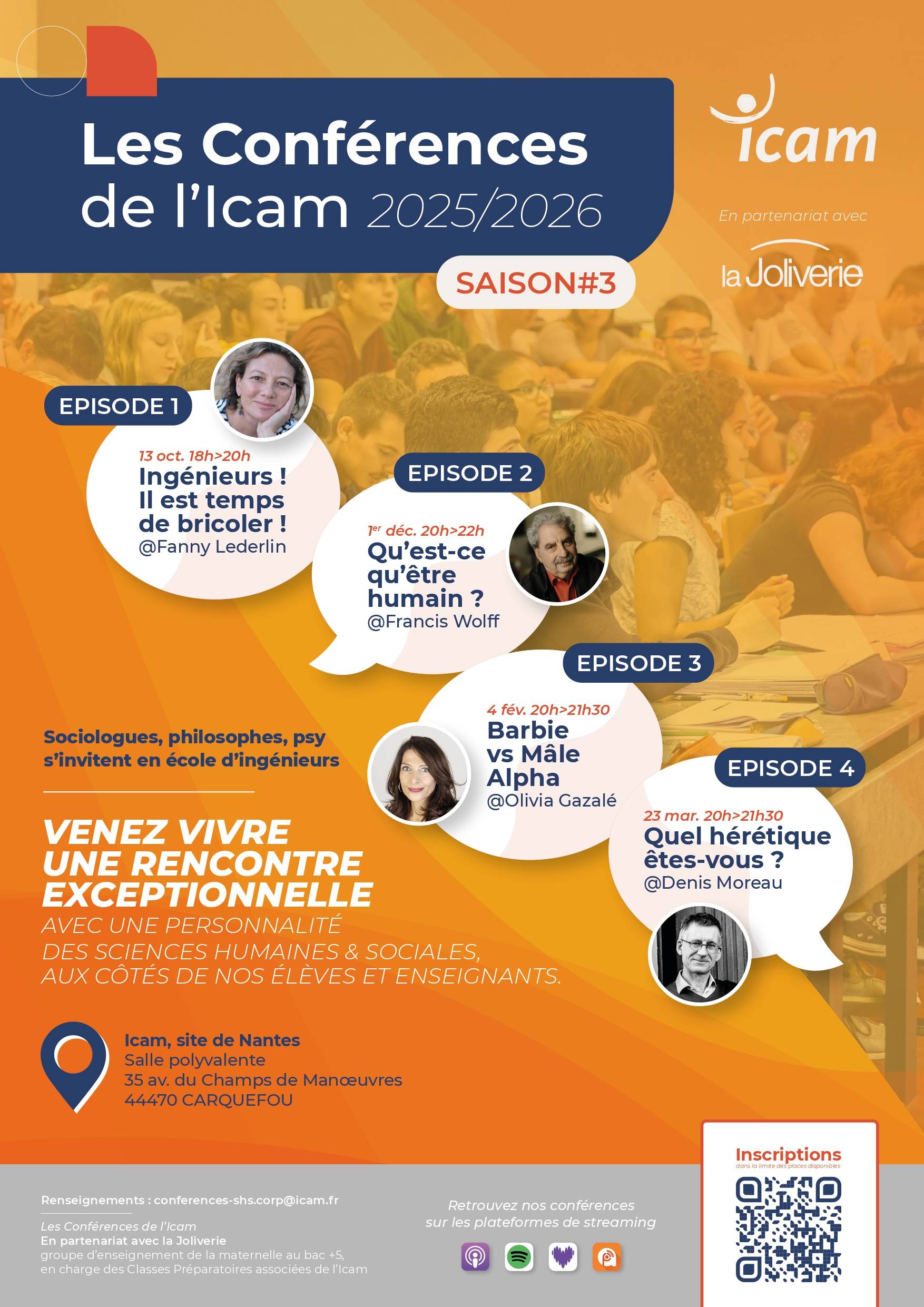 Venez vivre une rencontre exceptionnelle avec un grand témoin du monde contemporain, pour cette troisième saison du cycle de conférences en sciences humaines. Rendez-vous les 1er décembre 2025, 4 février 2026 et 23 mars 2026 à l’Icam, site de Nantes.…