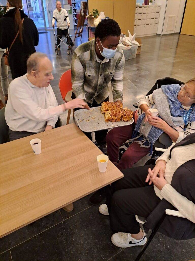 Mais leur engagement ne s’est pas arrêté là : ils avaient apporté le goûter, qu’ils ont servi et partagé avec les résidents, créant ainsi un véritable moment de convivialité, d’échange et de chaleur humaine.
