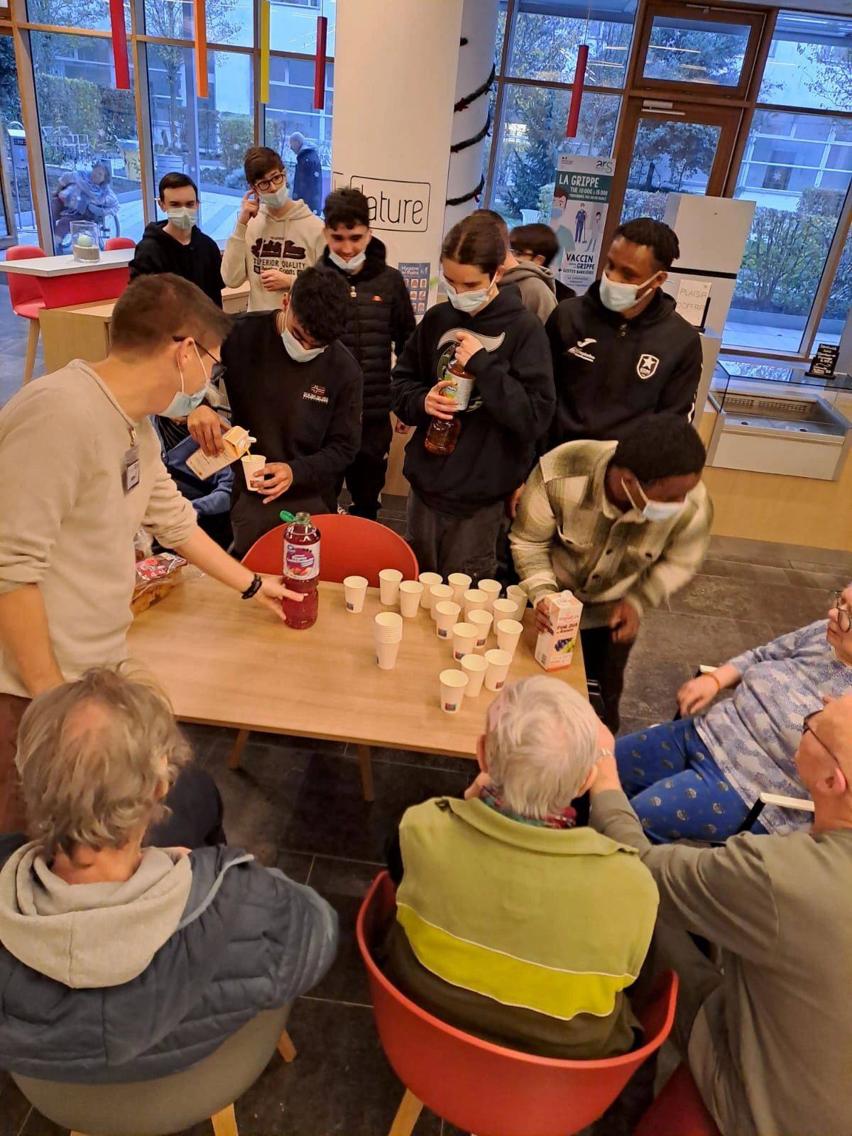 Mais leur engagement ne s’est pas arrêté là : ils avaient apporté le goûter, qu’ils ont servi et partagé avec les résidents, créant ainsi un véritable moment de convivialité, d’échange et de chaleur humaine.